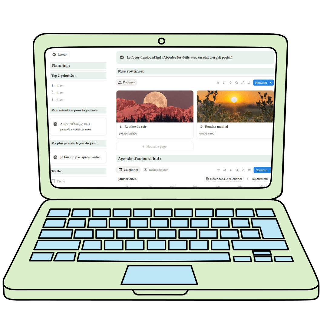 Ton template Notion tout-en-un pour organiser ton business et ton quotidien, avec clarté, sérénité et efficacité.